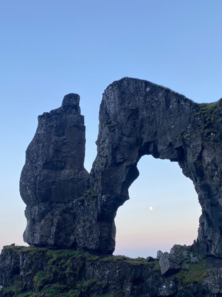 The stone arch can be found in the cliffs right above Sléttaleiti, which used to be a farm but has since been rebuilt and used today as a writers residency house.