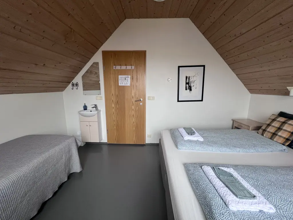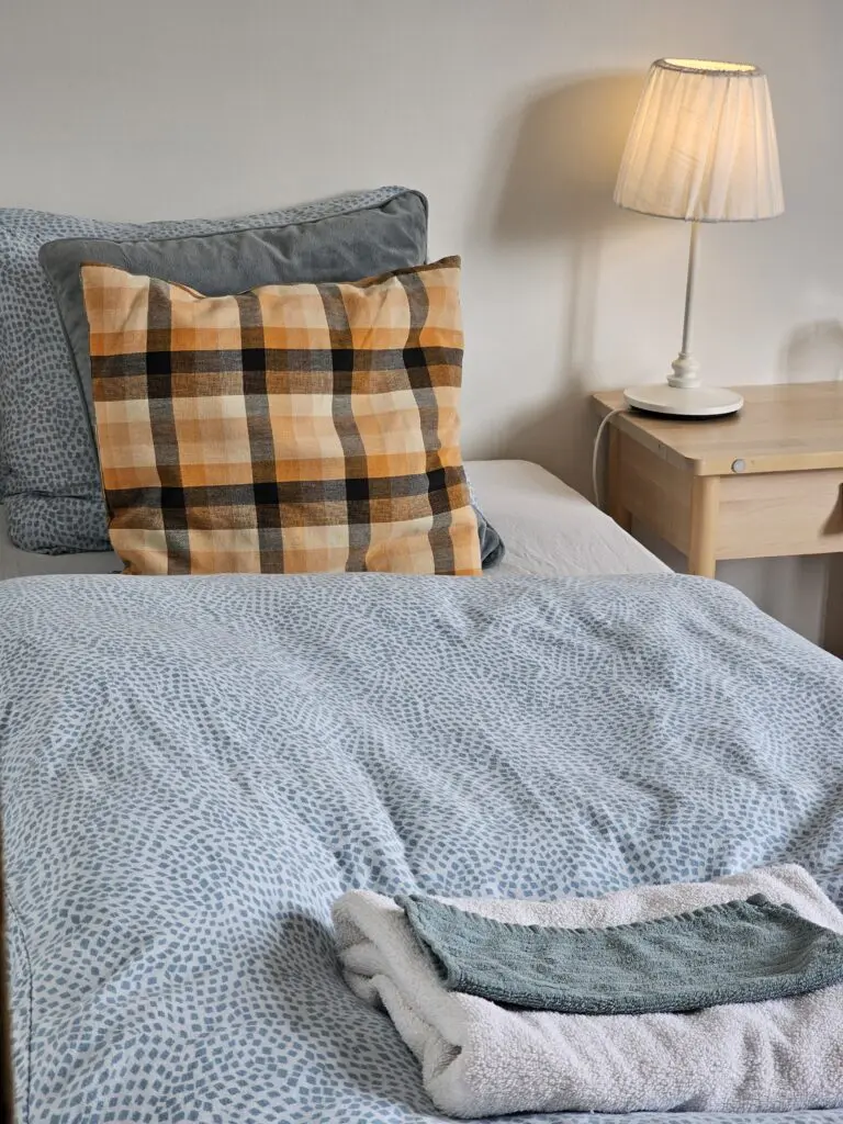 Small & budget room with a DBL bed size of 160×200. Wash basin in room and access to shared bathroom facilities. Comfortable beds with linen and towels included in the room price.
